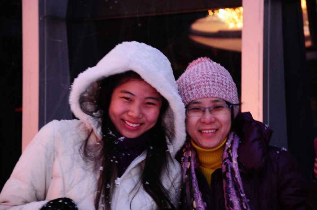 thats real snowflakes on my hair! and thats my mom, with a Rudolph nose.